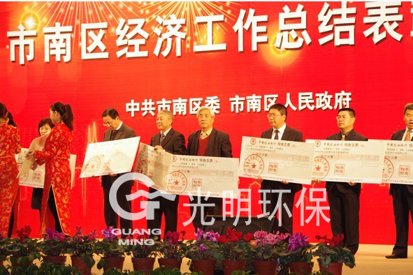 2011年1月28日(星期五)下午15:30分,在八大关小礼堂召开全区经济工作总结表彰会议,对在2010年经济发展中做出突出贡献的企业进行表彰奖励,全区共有上万家企业,只有60家获此殊荣,光明环保技术有限公司有幸成为获此殊荣的企业之一。
